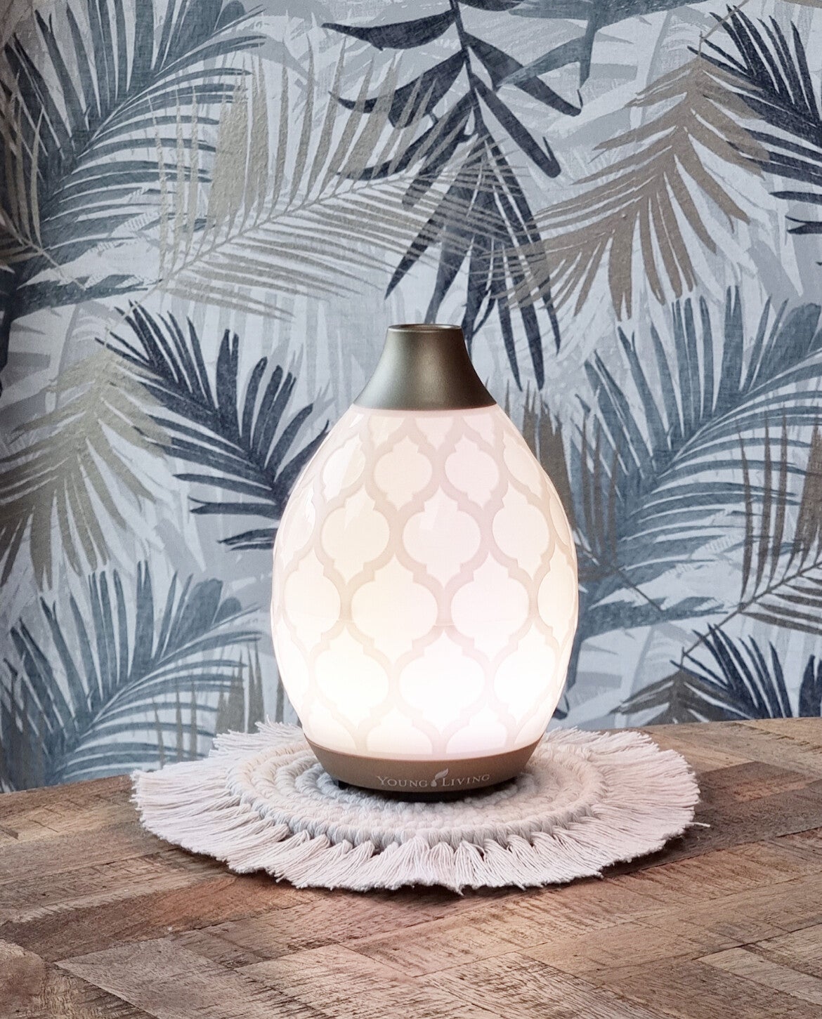 Handgeknoopte macramé plate. Leuk als decoratie voor onder jouw eigen diffuser, of natuurlijk om ergens anders op sier te leggen.